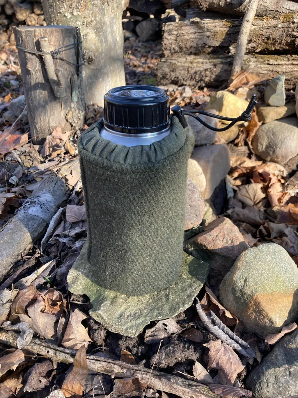The 100% Wool Bottle Blanket is tailored to fit our Pathfinder 32oz water bottle kit and fits into the PF water bottle bag like a glove. During winter, its insulation prevents water from freezing, and in summer, simply wet the wool and its evaporation-promoting wool chills your water to perfection.