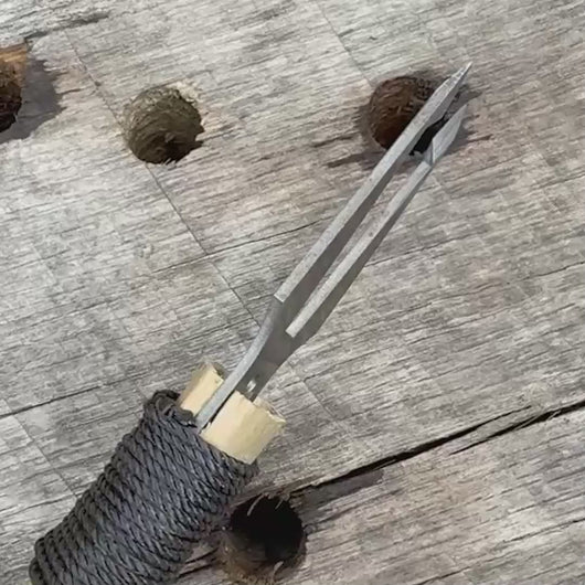 This gig features a geometry optimized for superior holding strength as a dual tine tool. Its size is ideal for targeting large frogs, medium freshwater fish, or medium-sized flounder along coastal beaches. It offers versatile attachment options and can be permanently secured using pins or screws. Made from 1095 carbon steel, it requires regular oiling but benefits from easy sharpening and point maintenance in the field.